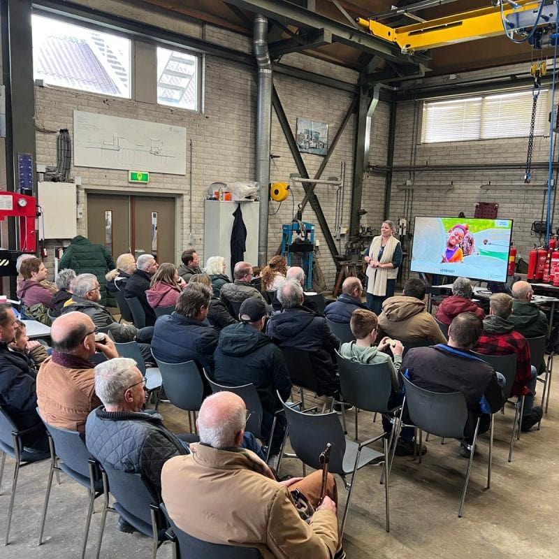 Ruim dertig bezoekers kregen uitleg over het belang van schoon water en goede toiletten bij rioolwaterzuivering Sleeuwijk. De excursie in november was georganiseerd door Woord en Daad en GMB die samen optrekken bij een sanitatieproject in Ghana. ‘Een veilig toilet is geen luxe, maar levensreddend’, vertelde project-leider Duurzaam Water Nelline Roest. ‘Dagelijks sterven er 21 Ghanezen door sanitatie gerelateerde ziekten, terwijl die te voorkomen zijn.’